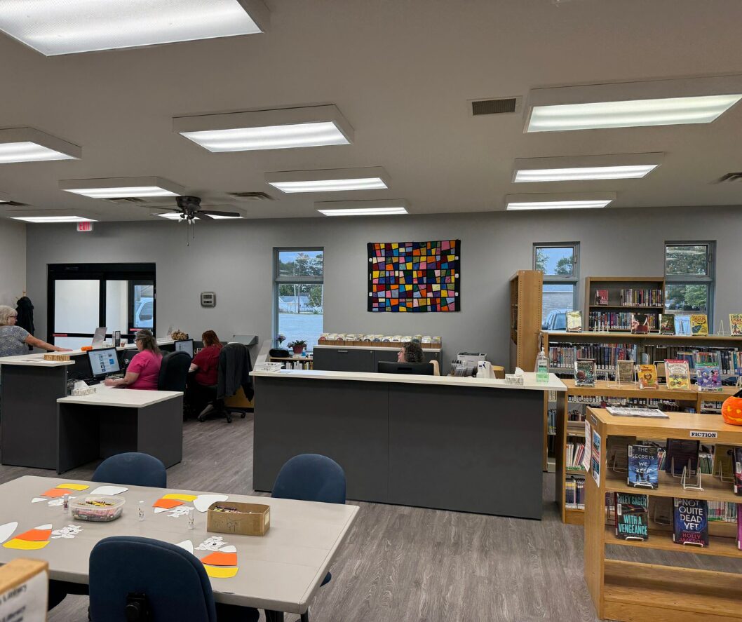 Working closely with the client and architect, we assisted in designing a new entry and circulation desk to improve access and functionality for library visitors. The project also included the renovation of the existing restrooms with a new drinking fountain w/bottle filler. Designed in the summer of 2024, construction began in the fall of 2024 and was completed in the fall of 2025, resulting in an updated, more accessible library experience for the community.