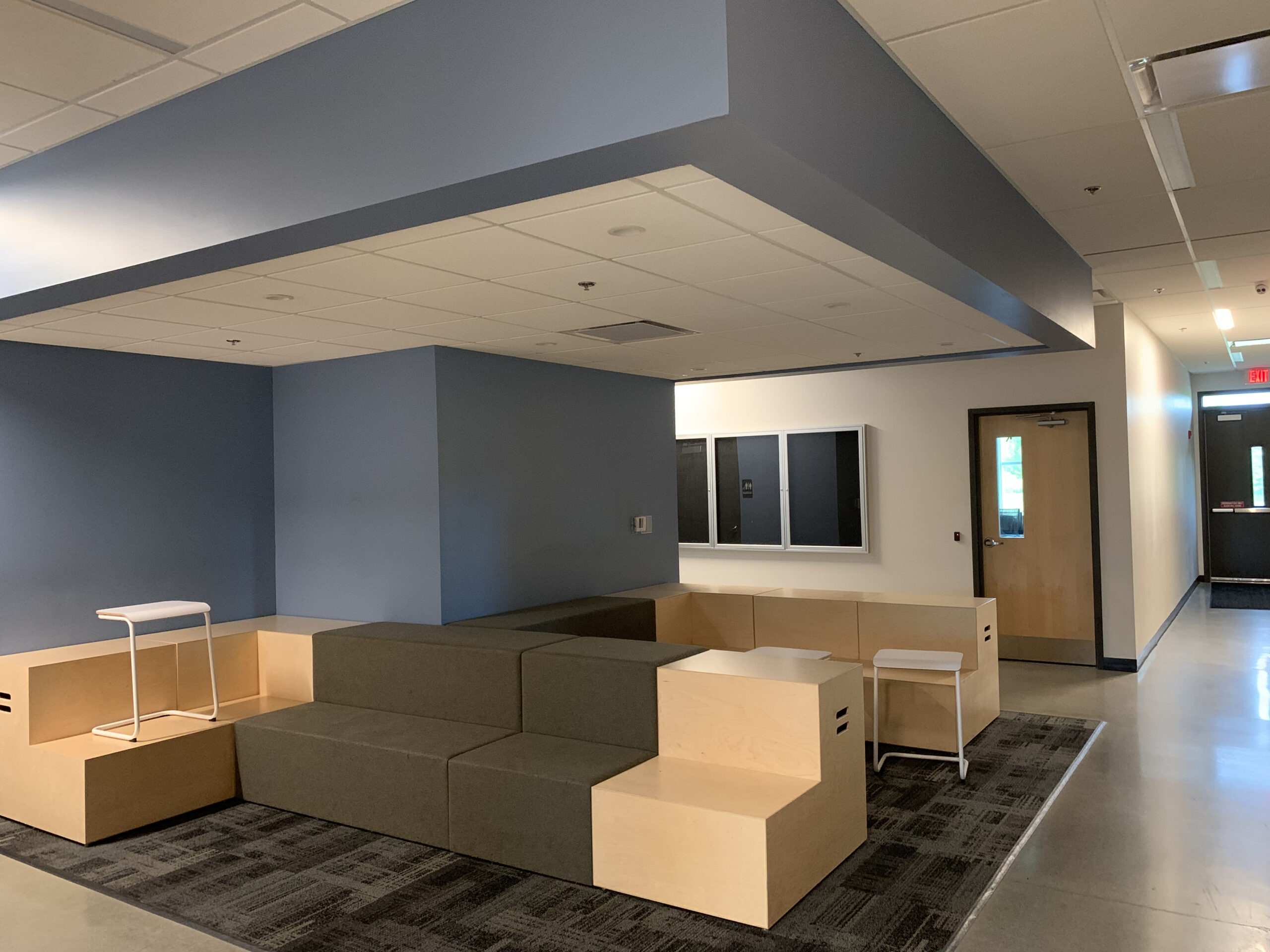 We also designed an open gym space which is used for gym class but also lunch. Our client didn’t want the ductwork running across the room, so we utilized a high velocity jet diffuser to provide air across the space.